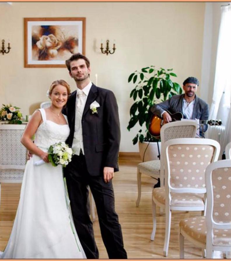 Brautpaar Anja und Georg nach einer von Halle-Barde musikalisch umrahmten Hochzeit im Zinzendorfhaus in Neudietendorf am 6.8.2011: "Mario, du machst echt gute Musik! Danke noch mal, dass wir und unsere Gäste in den Genuss deiner musikalischen Künste kommen durften :-) !!! War echt superpassend und genial auf unsere Hochzeit abgestimmt !!"